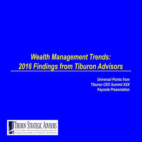 Wealth Management Trends 2016 Findings From Tiburon Advisors